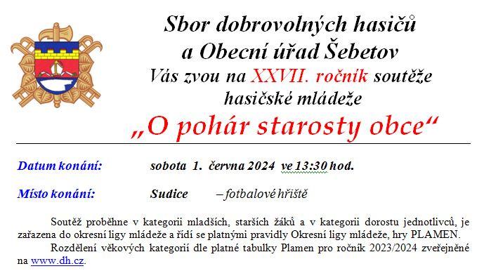 Možná se divíte, proč se šebetovská soutěž konala v Sudicích. Bohužel nás k tomu donutila plánovaná uzavírka hlavního tahu přes obec a s tím spojená objízdná trasa vedoucí kolem zbrojnice a hlavně kolem naší sportovní trati. Na hasičskou soutěž „O pohár starosty obce Šebetov“ každoročně přijede přes 20 družstev mladých hasičů a kolem 50 jednotlivců. Neméně je pak automobilů které soutěžící přivezou. Tato situace by zajisté způsobila nemalé komplikace v dopravě a proto jsme hledali alternativní řešení jak danou situaci vyřešit. Konečným řešením bylo, že jsme soutěž přesunuli na fotbalové hřiště do Sudic. Za zapůjčení areálu a pomoc moc děkujeme.